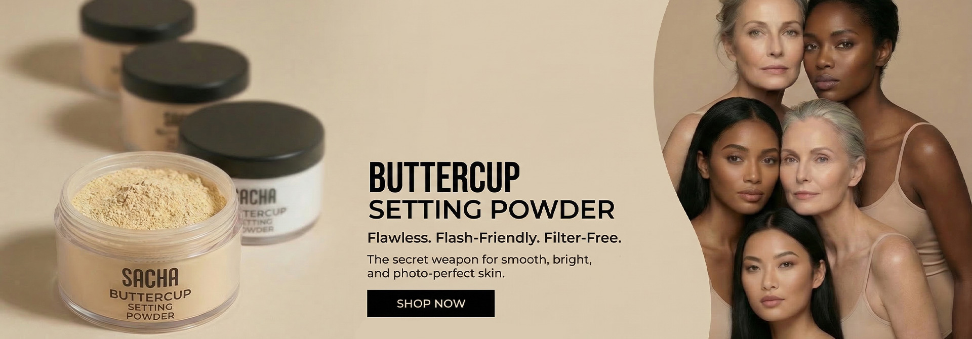 Discover the Sacha Buttercup Line featuring our Buttercup Foundations and the iconic Buttercup Powder.